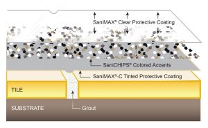 VariGLAZESM is a restorative bonding process utilizing two very durable coatings plus decorative accent chips to overlay the entire surface. The base is a pigmented coating available in a variety of colors; the top coat is a clear coating. This process will change the color of both the tile and grout to create a neat, unified look. A special compound of micro-particles can be added to enhance appearance and improve the coefficient of friction. VariGLAZESM provides an exceptionally high level of appearance and the ultimate in protection.
