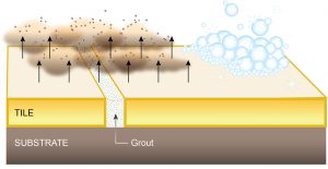 Surface preparation is the foundation of all SaniGLAZE restorative bonding processes. Therefore, each SaniGLAZE process begins with a thorough emulsification and extraction of surface soils and embedded contaminants in addition to the removal of any previously applied seals or finishes. Surface prep is performed through a combination of mechanical and chemical steps using SaniGLAZE proprietary pre-prep and prep products. All SaniGLAZE products, whether pre-prep, prep, or coating products, are exclusively formulated and optimized for grout joints and/or tile surfaces.